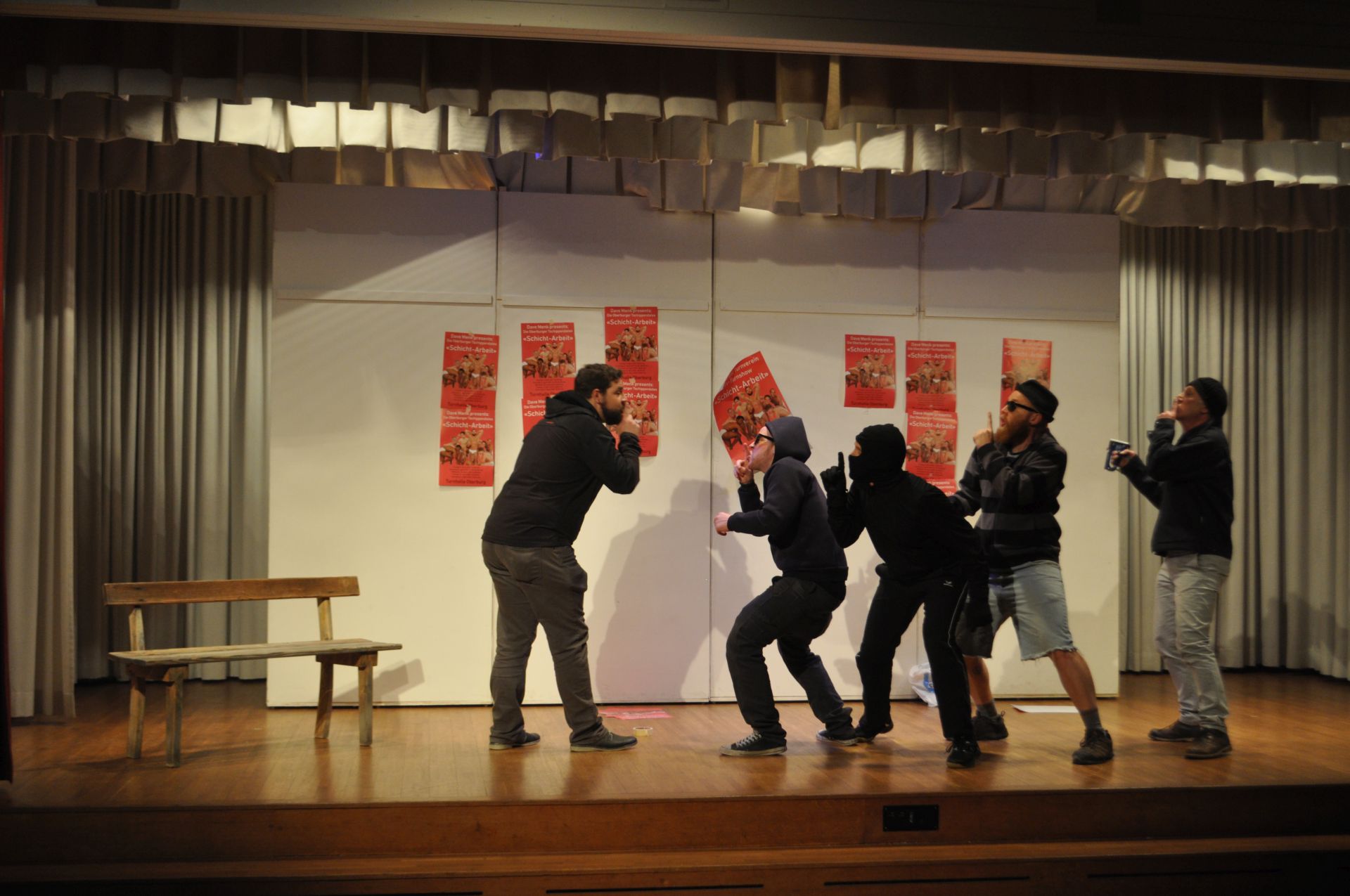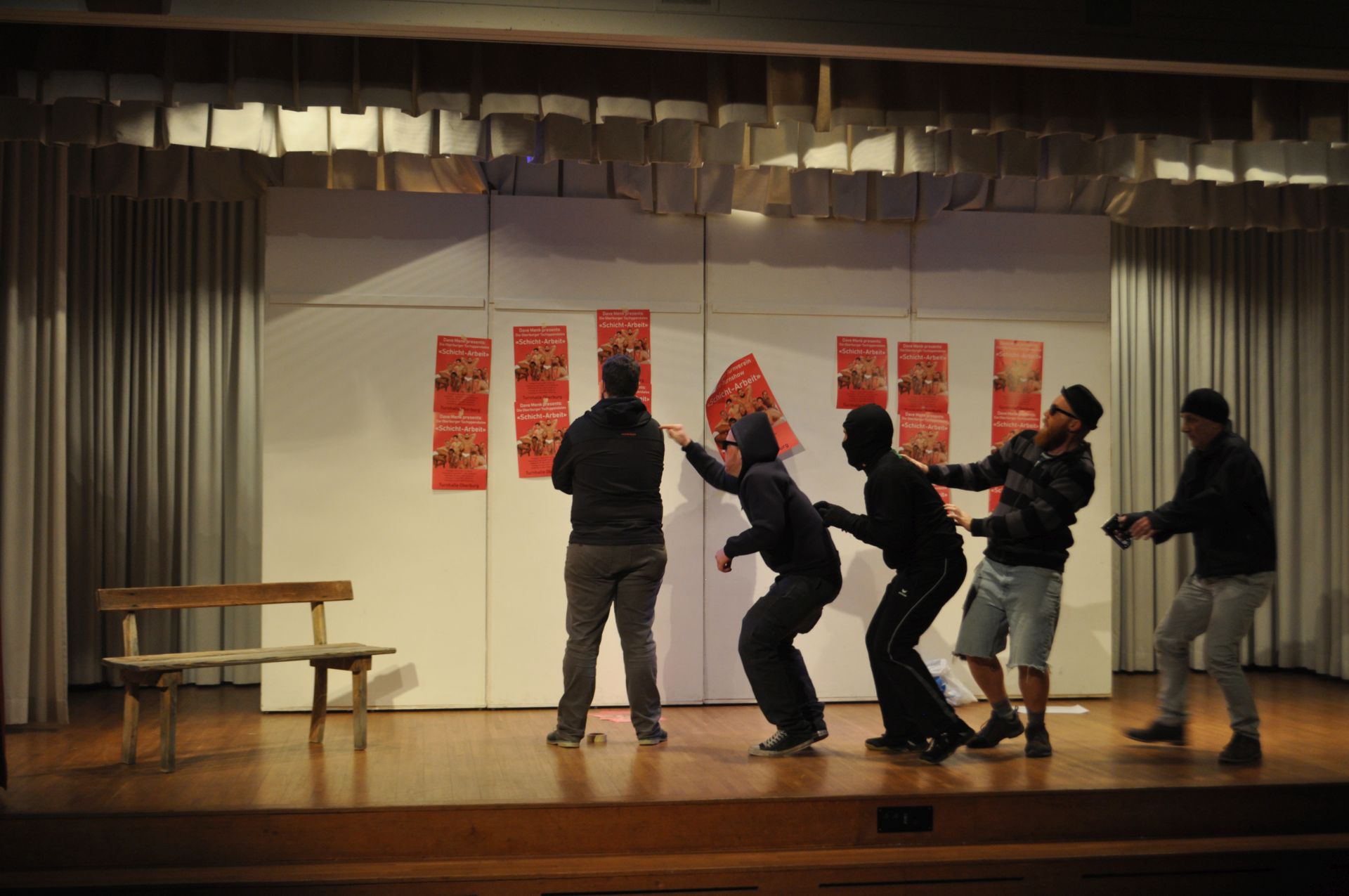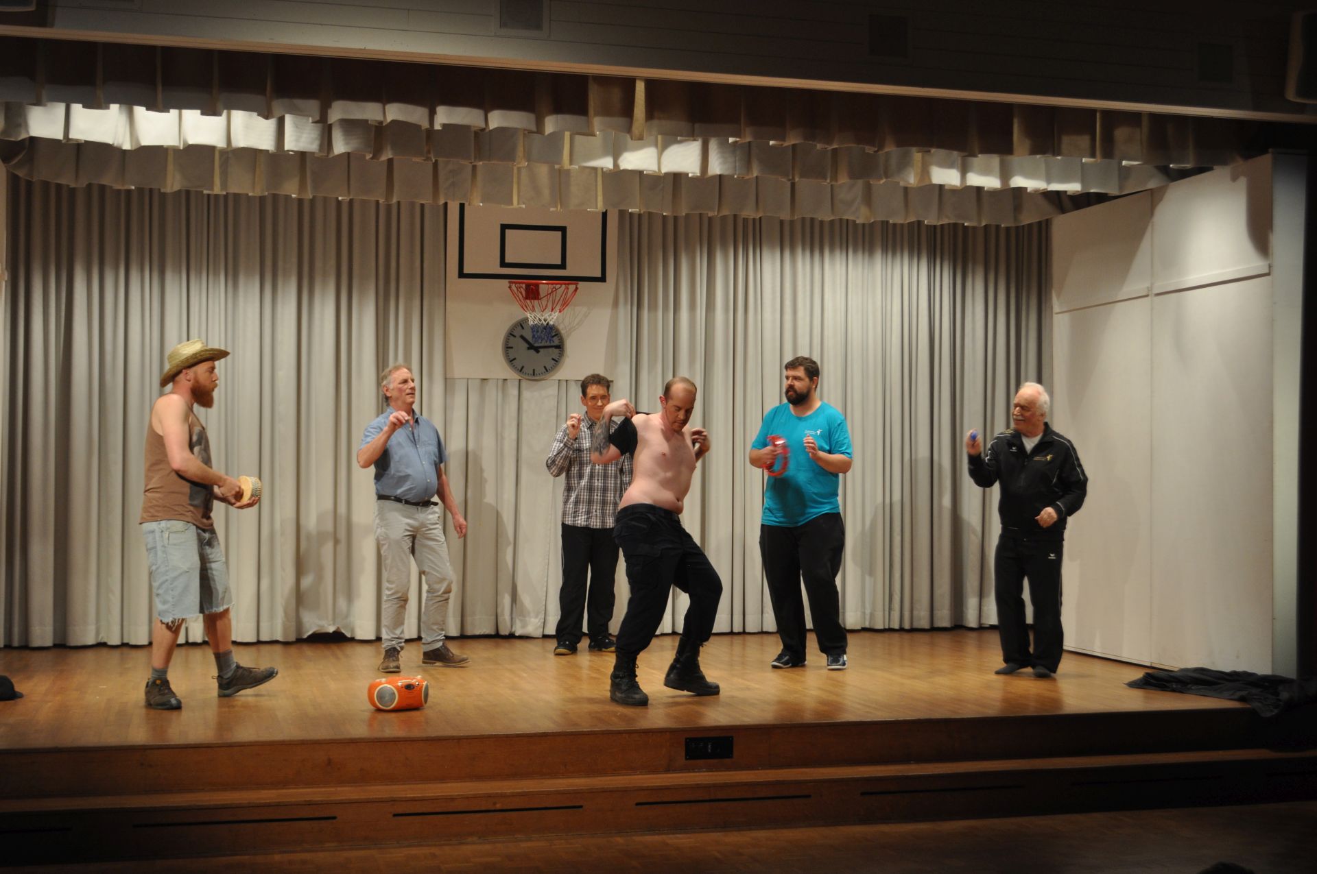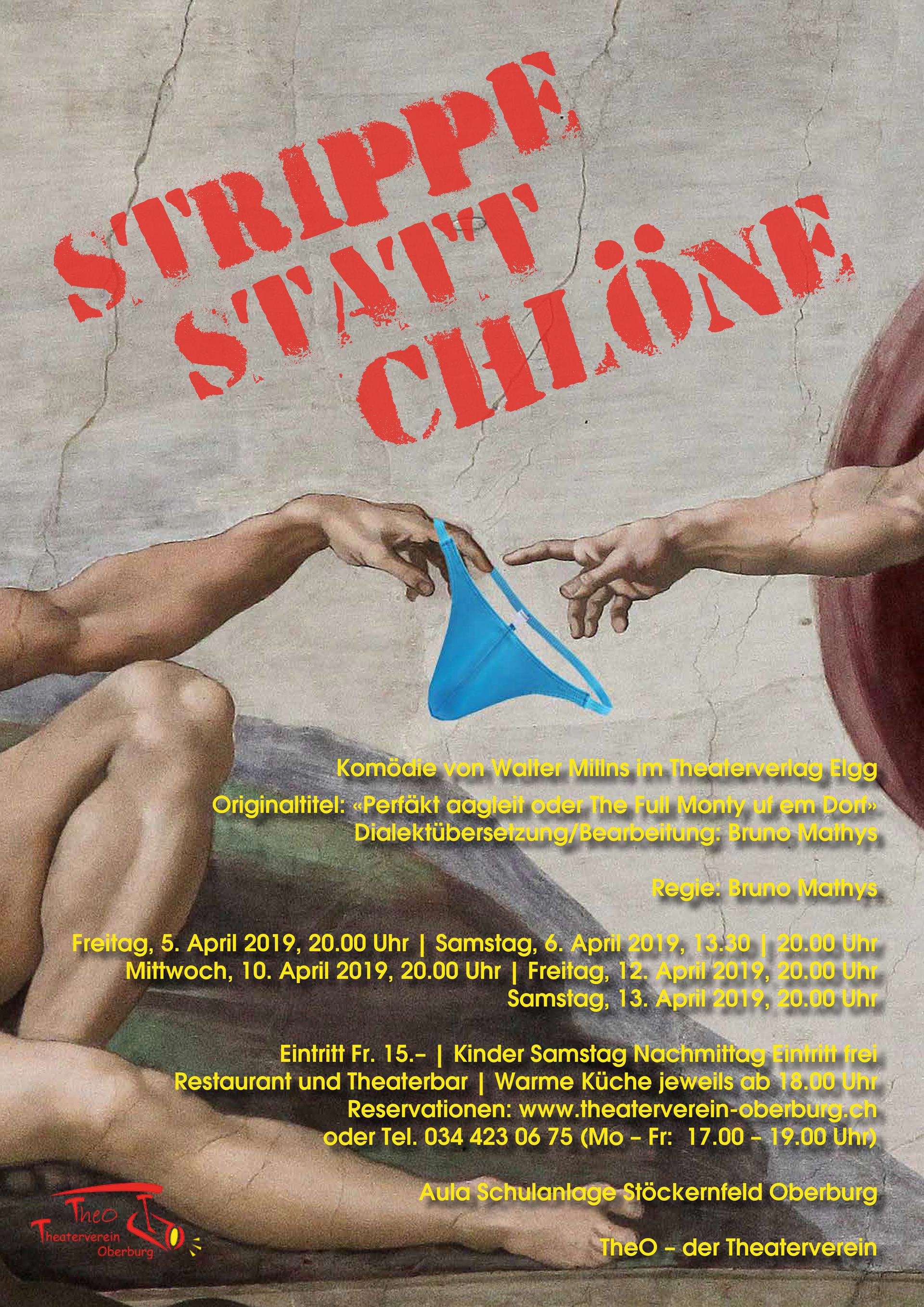 Mit «Strippe statt chlöne» respektive «Perfäkt aagleit oder The Full Monty uf em Dorf», wie das Stück von Walter Millns im Original lautet, inszeniert der Theaterverein Oberburg (TheO) im April 2019 ein Lustspiel, welches nachdenkliche Momente mit Situationskomik vereint und sich am Schluss nicht scheut, nackte Tatsachen sprechen zu lassen. Oder am Ende doch?
