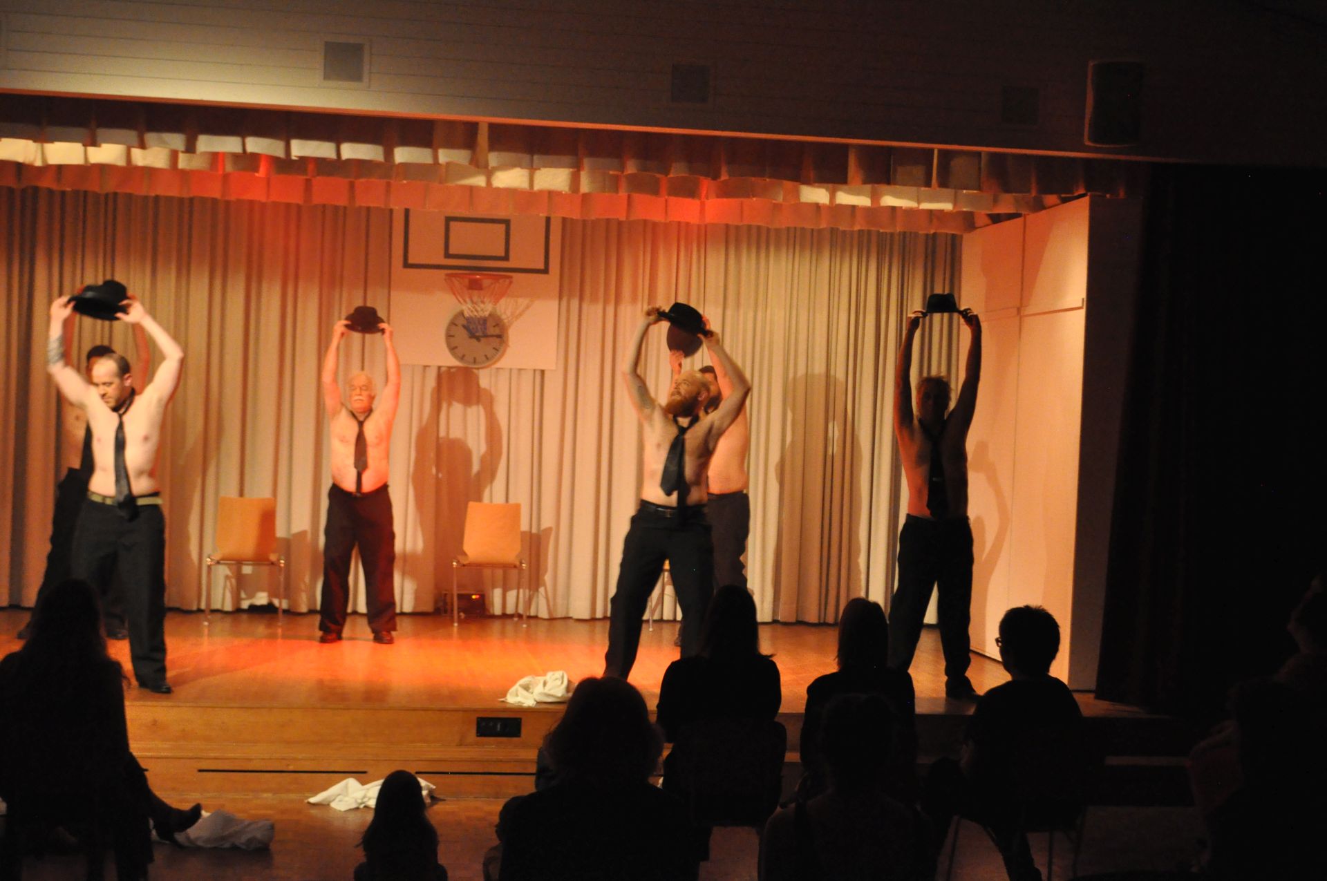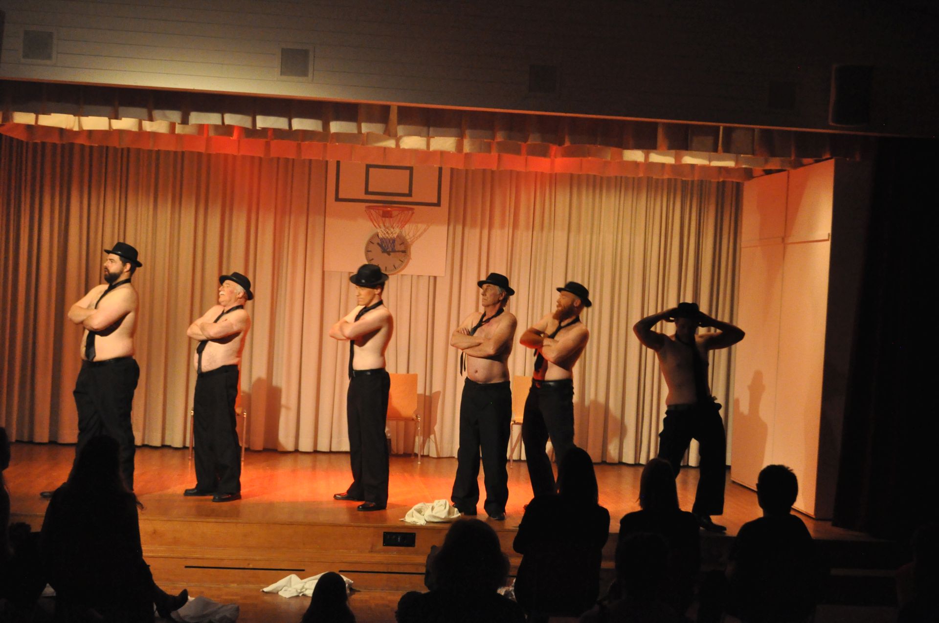 Der arbeitslose Dave, eine der Figuren im Stück, hat eine solche Idee, auch wenn sie geklaut ist (wie übrigens diese Stückbeschreibung: sie stammt nämlich mit leichten Abänderungen von der Theatergesellschaft Steinhausen; dankeschön!): Er hat den Film «The Full Monty» gesehen.
